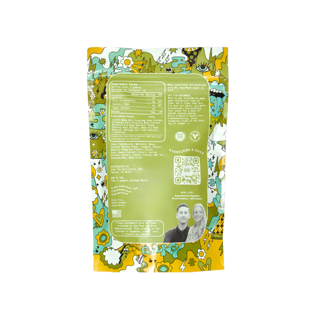 Your new productivity hack. Superfood energy gummies with no crash or jitters. Powered by functional mushrooms and adaptogens for peak performance. Science-backed. 3rd party lab tested. Made in the USA.