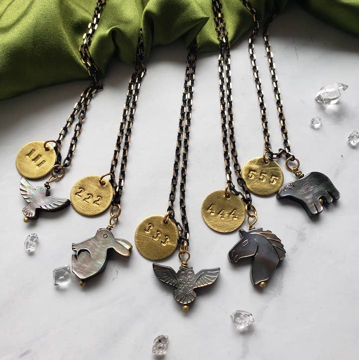 Mother of Pearl Animal Spirit + Angel number necklaces