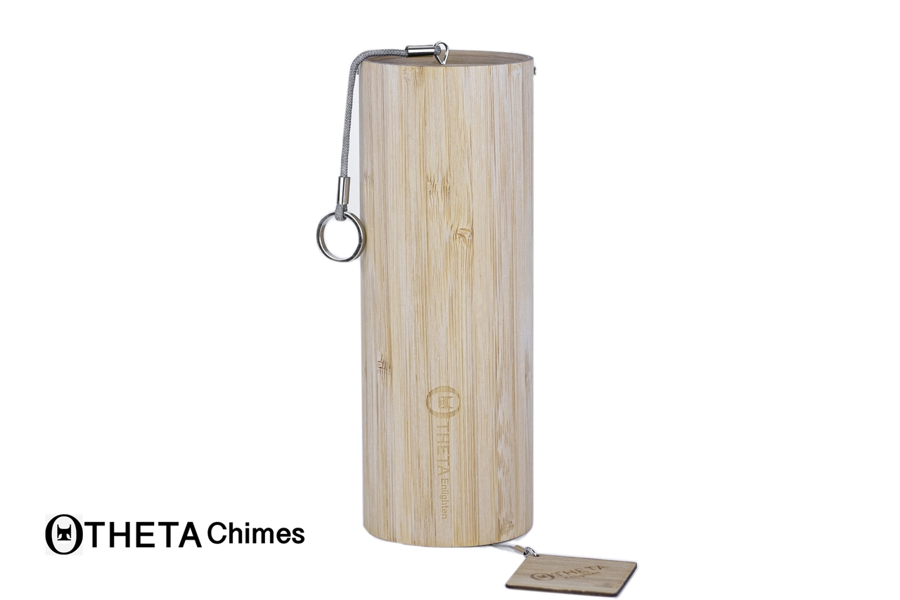 The Theta Chimes are hand tuned carillion chimes built in a bamboo tube. The metal chime features 8 precision ground tines that are tuned to produce the 8 different tones that make up the Enlighten Tuning. The tines are brazed into the metal base of the chime to form a singular unit. Tines are activated by a bead which creates sound on impact. The chime can be played by gently holding the rope at the top of the chime and lightly moving it in a circular motion. It can also be suspended by the rope and and hung outside to act as a windchime. The Theta Chime is made from untreated bamboo which can be UV sensitive suggested for indoor use.